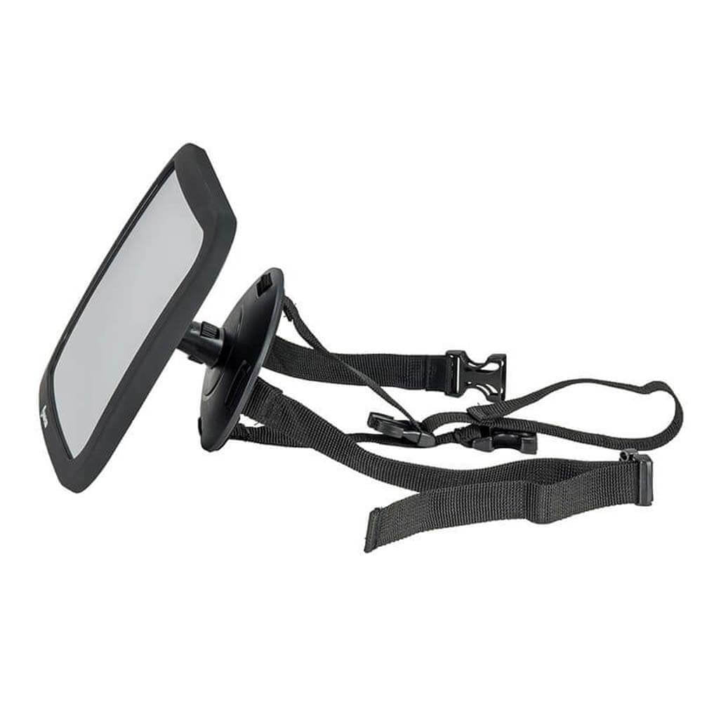 The adjustable attachment straps allow the mirror to securely attach to most vehicle head restraints, while its soft to touch frame looks great in any car interior.