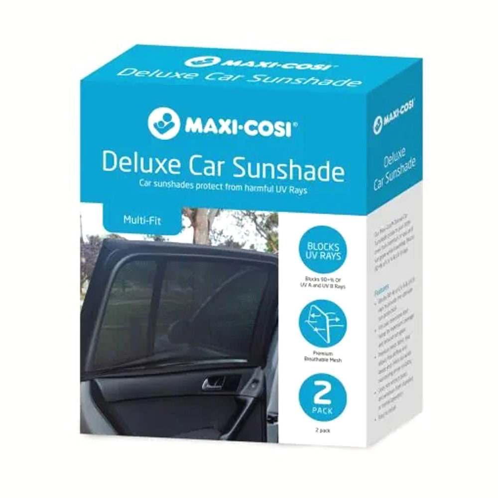 The Maxi-Cosi Deluxe Car Sunshade blocks 90% of UV A and UV B rays to provide the ultimate in sun protection for your little one, allowing for free airflow while maintaining driver visibility.