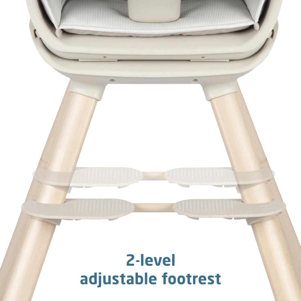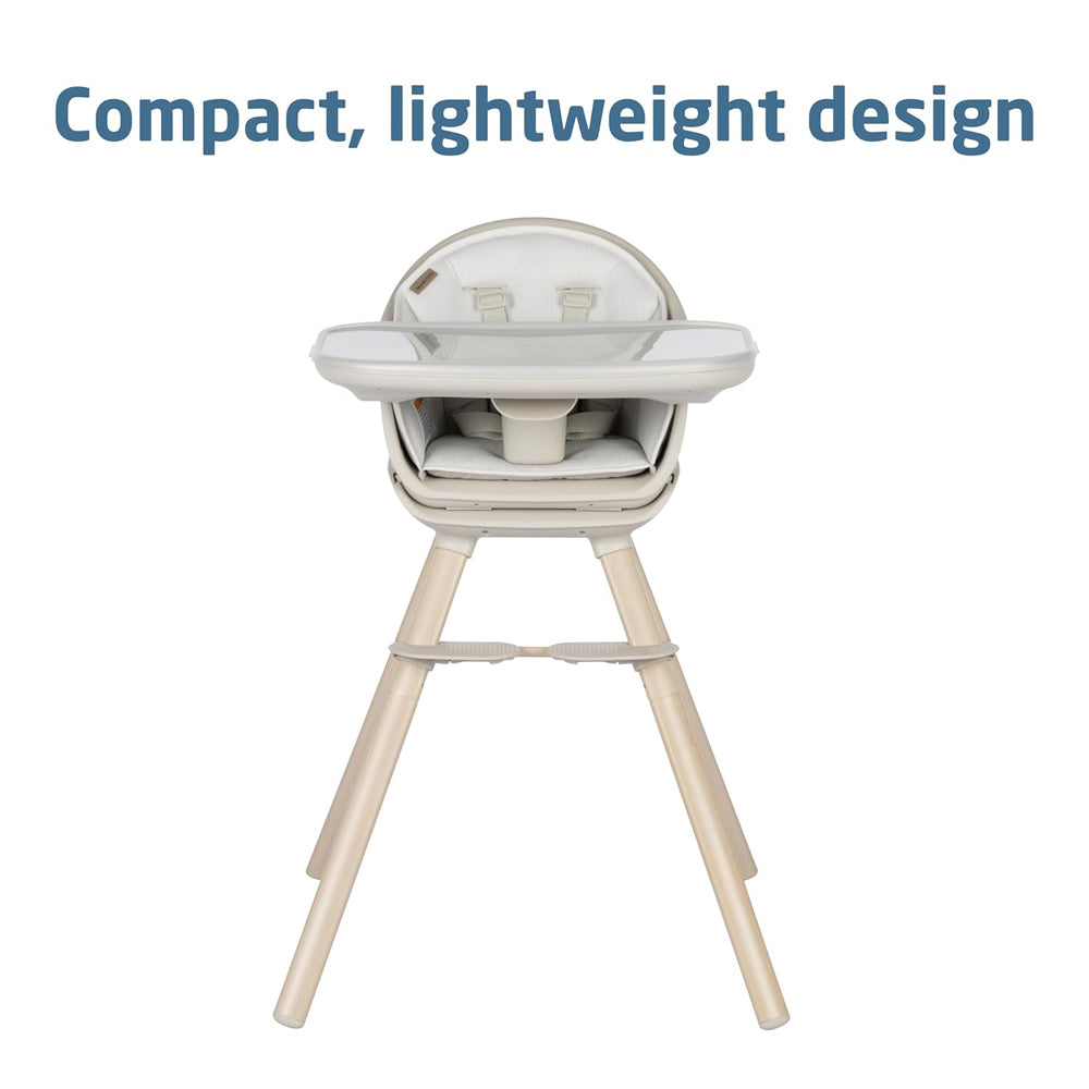 As they develop, the Maxi-Cosi MOA adapts and transforms from a highchair, to a low stool, booster seat, toddler stool, then a handy desk and seat. The perfect place for your child to eat, discover & grow.