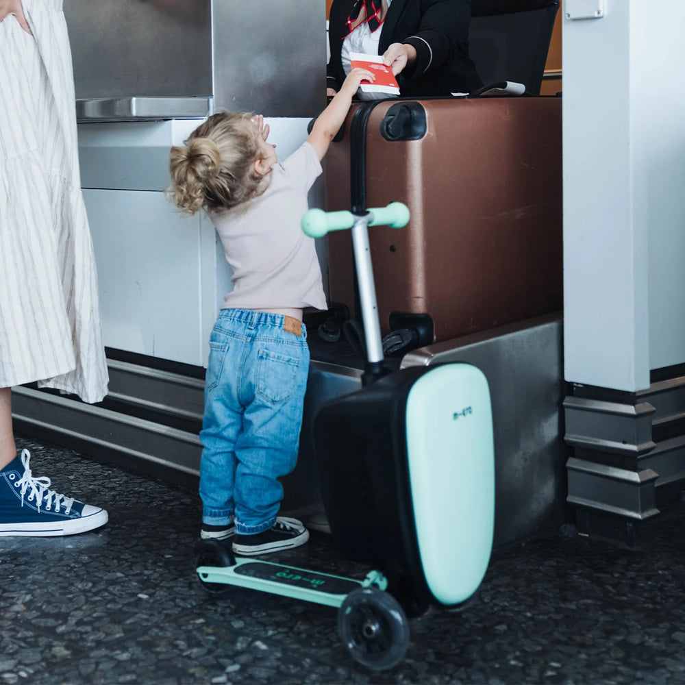 Thanks to the height adjustable handlebar, the Junior Luggage Scooter grows with your child and is designed for 2 - 6 year old's. When the Junior Luggage is folded into a suitcase, it is compact and is designed to fit into the overhead aircraft lockers for convenient storage.