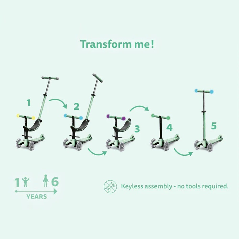 The Mini2Grow Deluxe Magic LED Scooter is designed to last through every stage of your child's early years, making it the perfect companion for endless adventures.