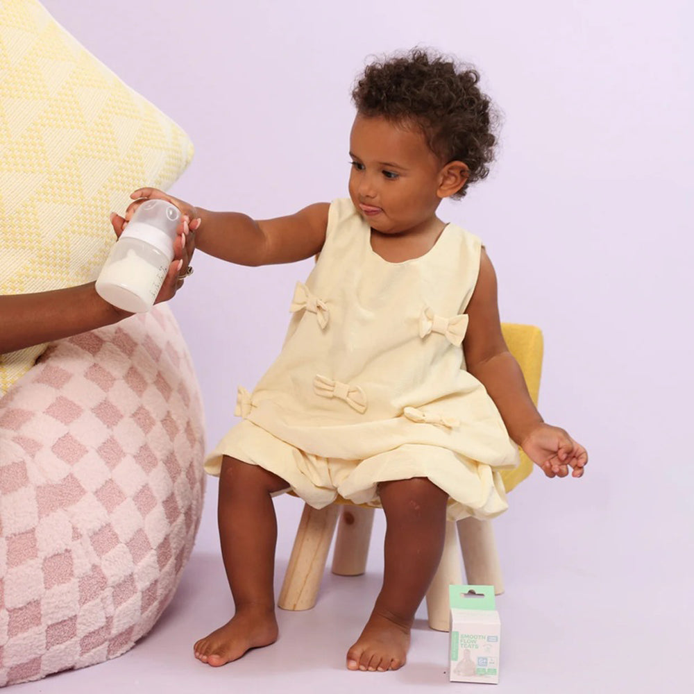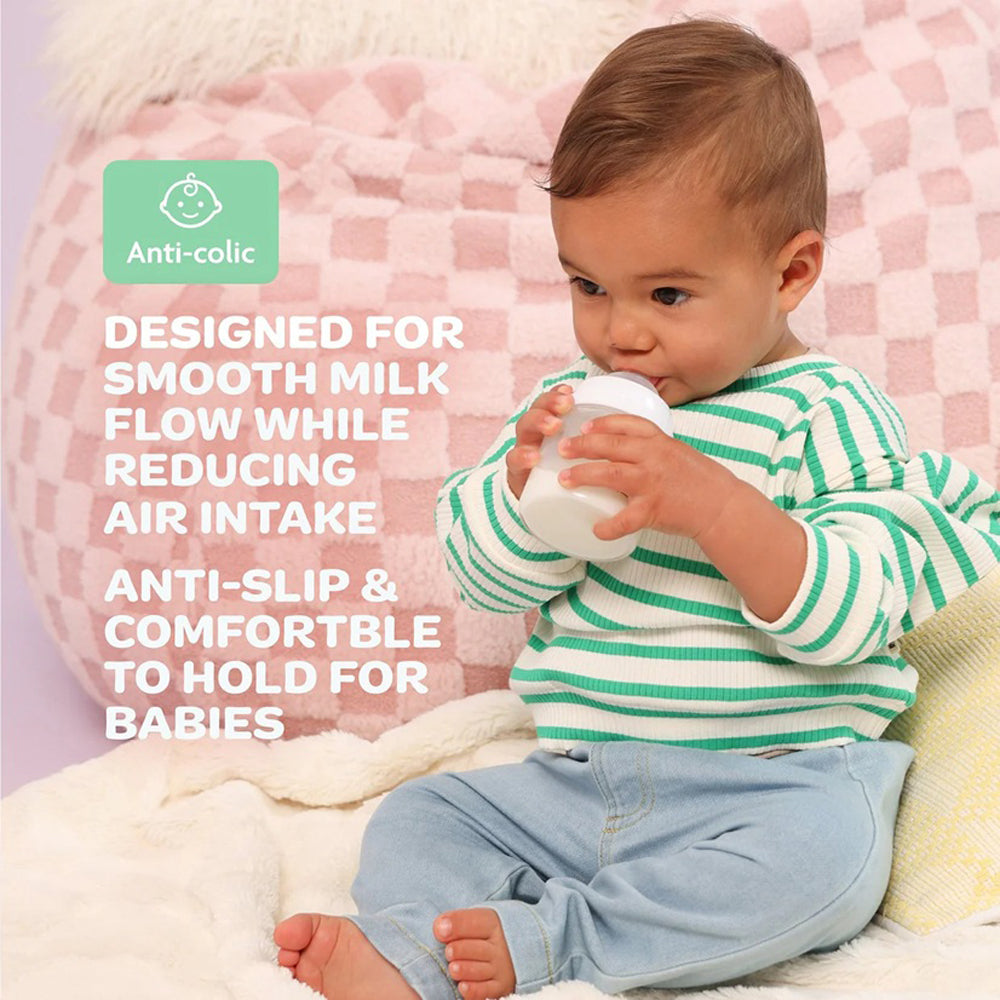 Each bottle comes with a soft, food-grade silicone teat shaped like mum’s breast, encouraging a natural latch and smooth transition between breast and bottle. The built-in anti-colic valve helps cut down on bubbles and air intake, reducing gas, fussiness, and discomfort so feeding time is calm and happy.