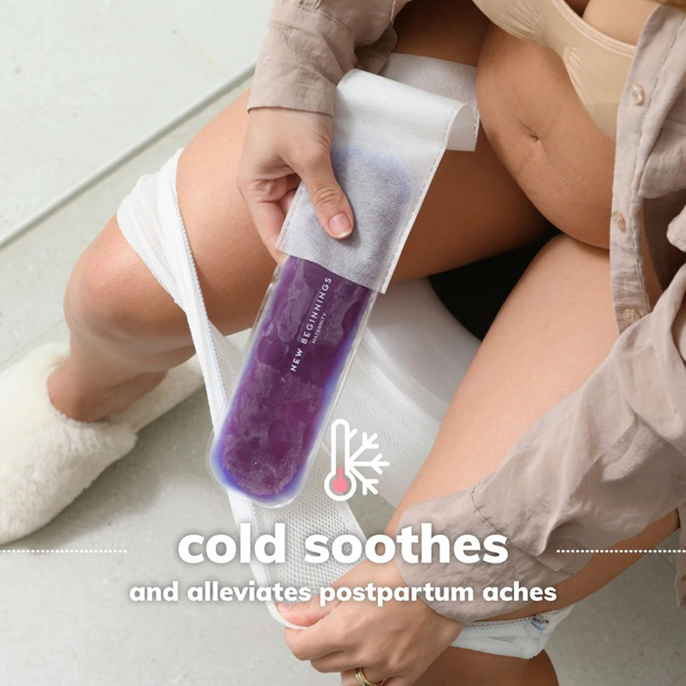 Cold compresses provide pain relief and reduce swelling in the perineal area, aiding in the recovery of common postpartum issues, such as tears, episiotomy, or haemorrhoids. It helps to decrease inflammation and promotes healing of wounds and stitches. Additionally, the numbing effect of cold can alleviate immediate postpartum discomfort and provide soothing relief.