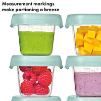 OXO Tot Baby Blocks Food Storage Containers give homemade baby food the same care you put into preparing it. Easily portion, store, freeze, heat and serve the meals you've cooked especially for your baby using Baby Block Containers in convenient 60ml size. Six 60ml containers fit into the freezing tray and each has measurement markings to make portioning a breeze.
