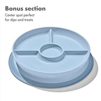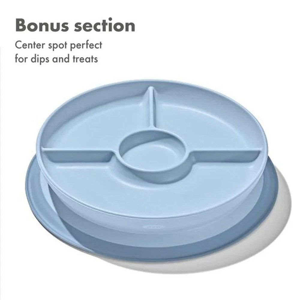 Cut down on mealtime messes with the OXO Tot Stick & Stay Suction Divided Plate. The Plate features a silicone base that sticks surfaces until mealtime is over, preventing sliding, slipping and tipping.