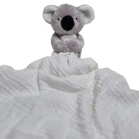 The Petite Vous Kip the Koala baby comfort blanket features a cool muslin blanket and makes an affordable and beautiful gift for any child. The comforter is presented on our luxe Petite Vous branded hangsell card making it perfect for a Baby Shower, Newborn, Christening or Special Birthday Gift.