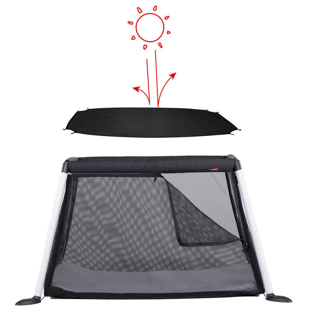 This easily toggles onto the traveller cot to keep baby cool & bugs away.