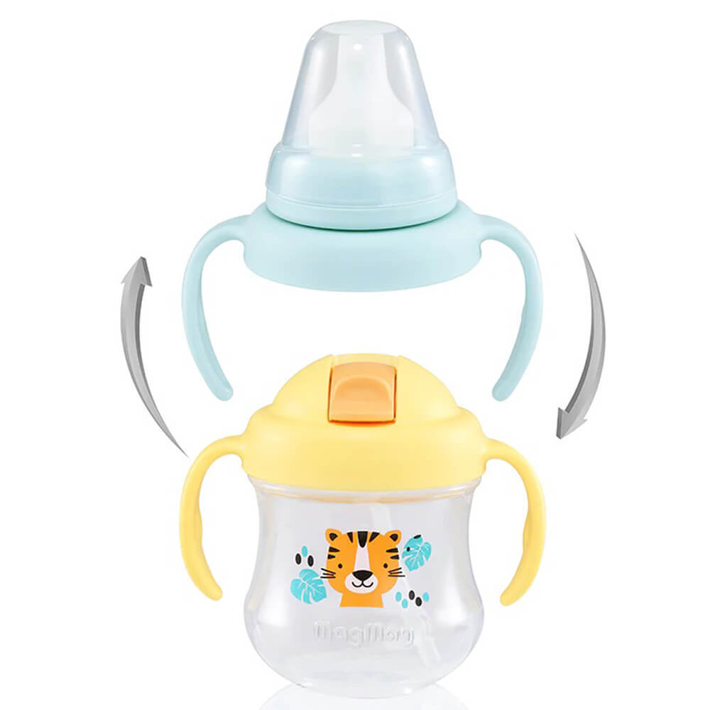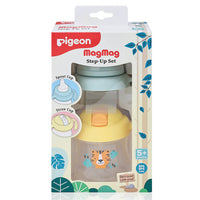 The Pigeon MagMag Step-Up Set is designed to promote and develop your baby's drinking habits through the offering of interchangeable drinking tops.