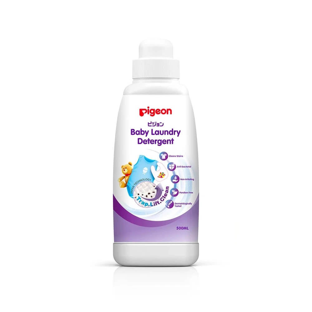 The Pigeon Baby Laundry Detergent is now formulated to effectively remove stubborn baby stains while remaining safe for newborn and baby skin.