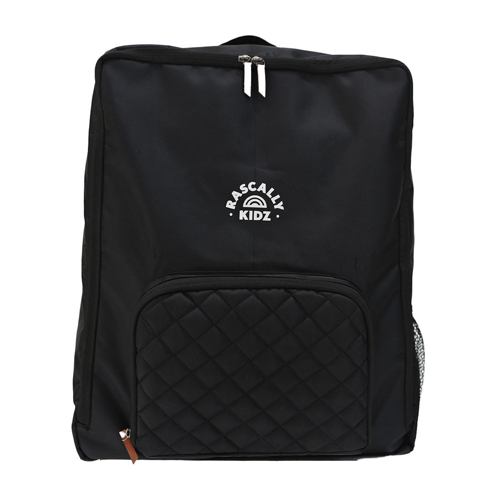 This beautiful fully lined product is made of premium 1000D nylon. It’s been designed to last the rough environment of travelling. The ability to carry it on your back allows hands free for other important issues whilst boarding. It’s water resistant and designed to fit most strollers.