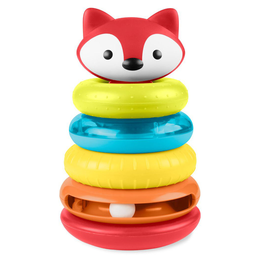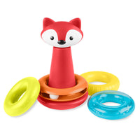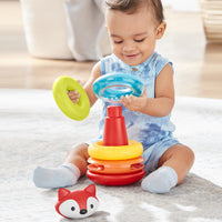Stack, sort, rattle and roll with the ring stacking toy for baby. Topped with a cute Fox friend and a rocking base, baby will love to grab and stack the four colorful rings. A playful way to encourage fine motor skills, hand-eye coordination and more learn and grow fun.