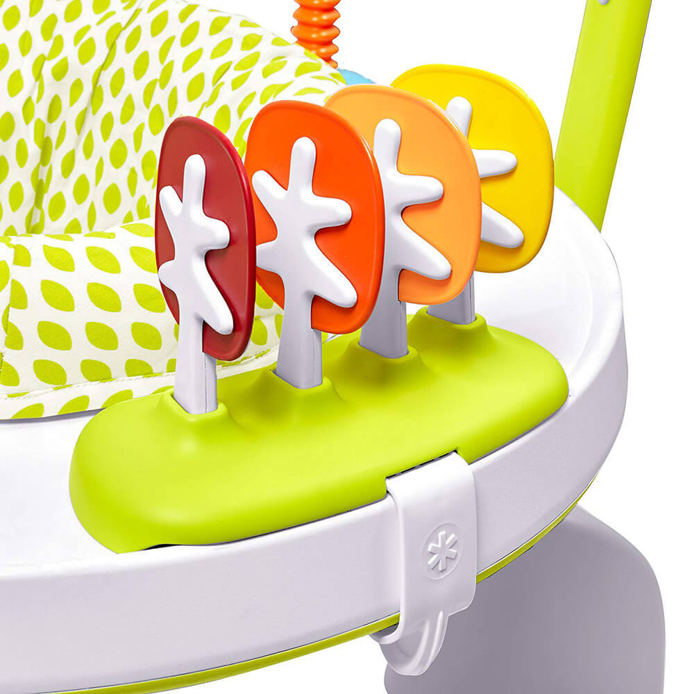 It features a 360-degree rotating seat so baby can sit, swivel and bounce for maximum exploration. Clip-on, movable toys encourage development and allow for customized play.Β