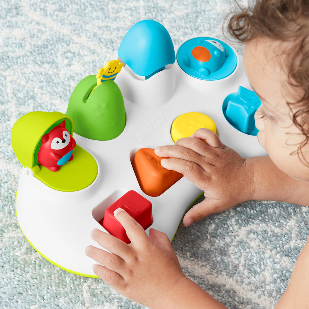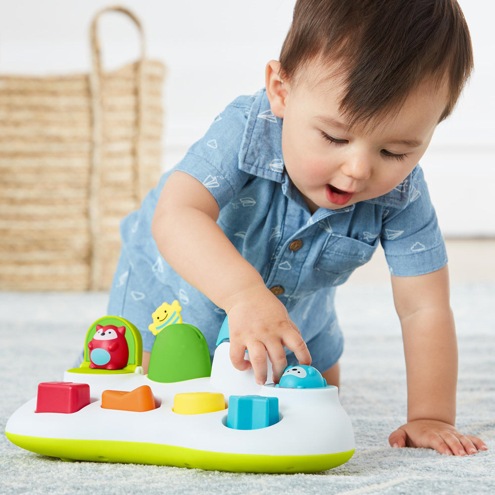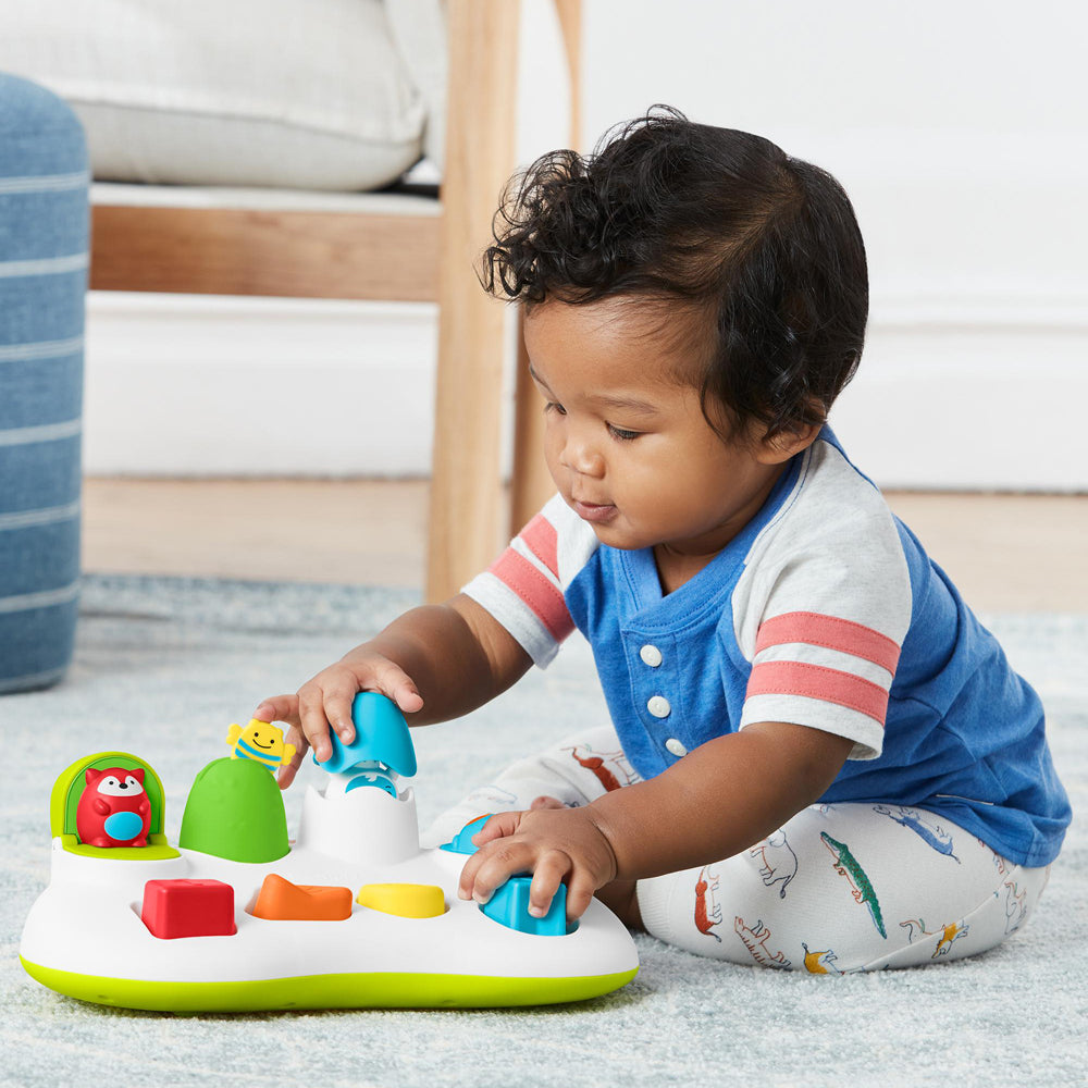 A playful intro to cause & effect, the colourful pop-up toy for baby is full of fun surprises, sounds and more for little hands to explore! Encourage fine motor skills and hand-eye coordination as baby presses, slides, toggles and turns the buttons to discover four cute action-packed friends, including a peek-a-boo fox and a spinning hedgehog.
