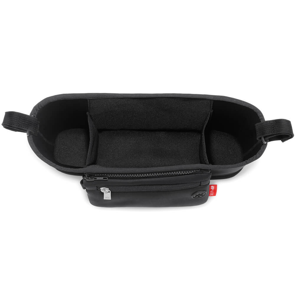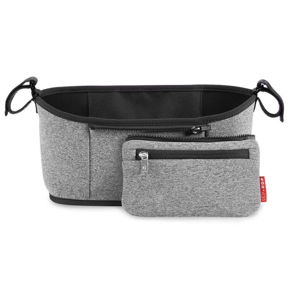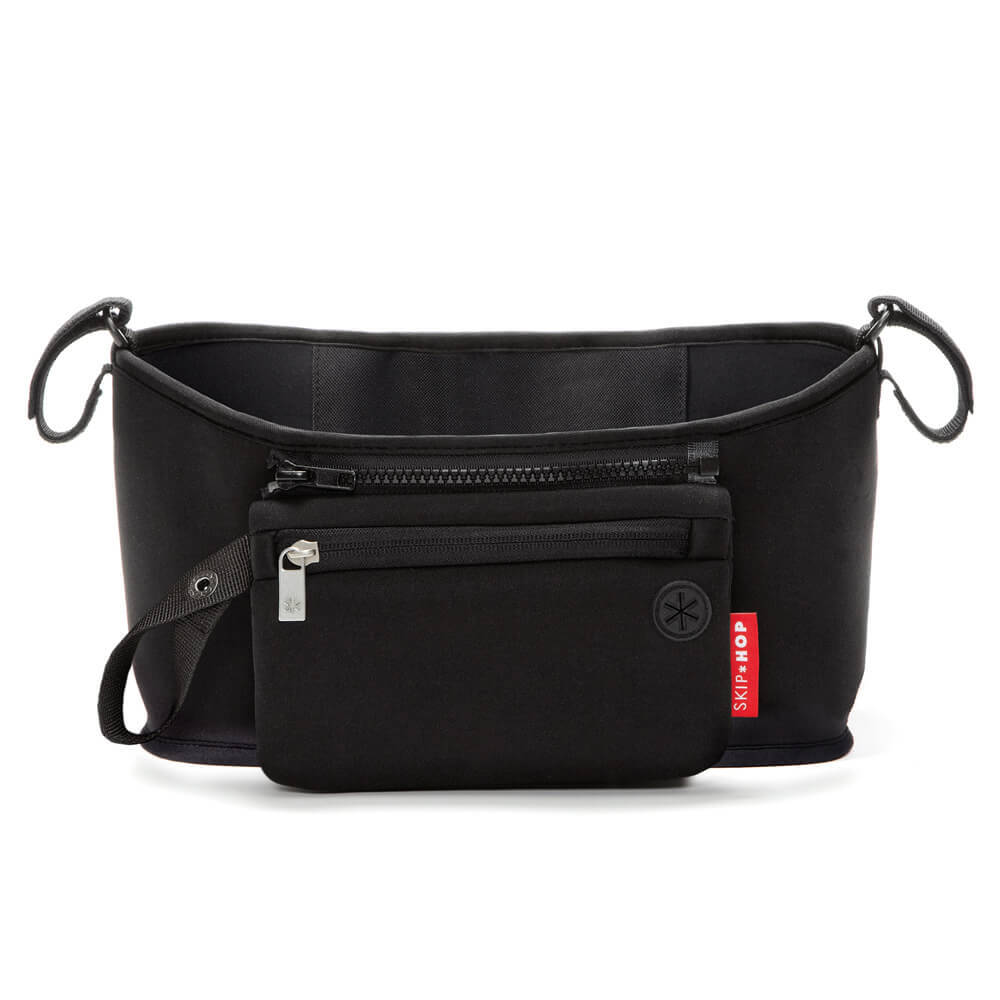 This insulated beverage and essentials caddy stretches to hold bottles and coffee cups securely, while providing easy access to your most important items. Fitting most stroller bars and handles, this organiser bag includes a detachable wristlet for errands and a headphone port for hands-free calls.
