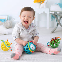 This familiar face engages baby in developmental play. The flexible body has easy-to-grasp openings that help little hands build dexterity. The rattle encourages rolling, shaking and tossing, while teethers and beads offer more to touch and explore.