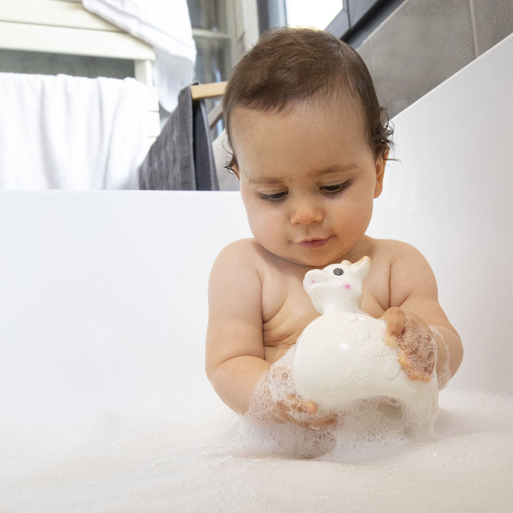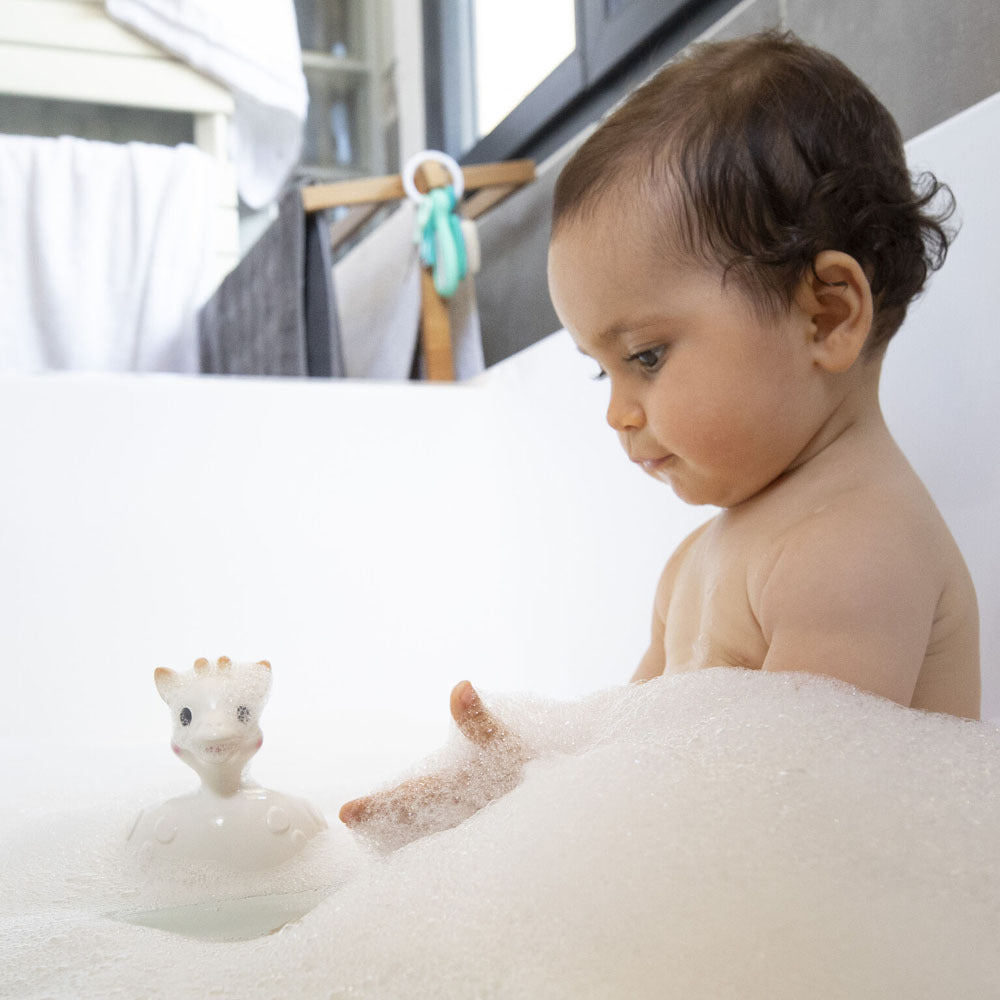 Just like the original Sophie La Girafe, this healthy toy is made from 100% natural rubber, derived from rubber tree sap, and decorated with food grade paints. Baby will enjoy nibbling the various parts (ears, horns, etc.) of this softly textured Sophie La Girafe floating toy.