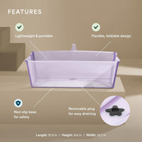 • A lightweight, portable baby bath tub that folds flat