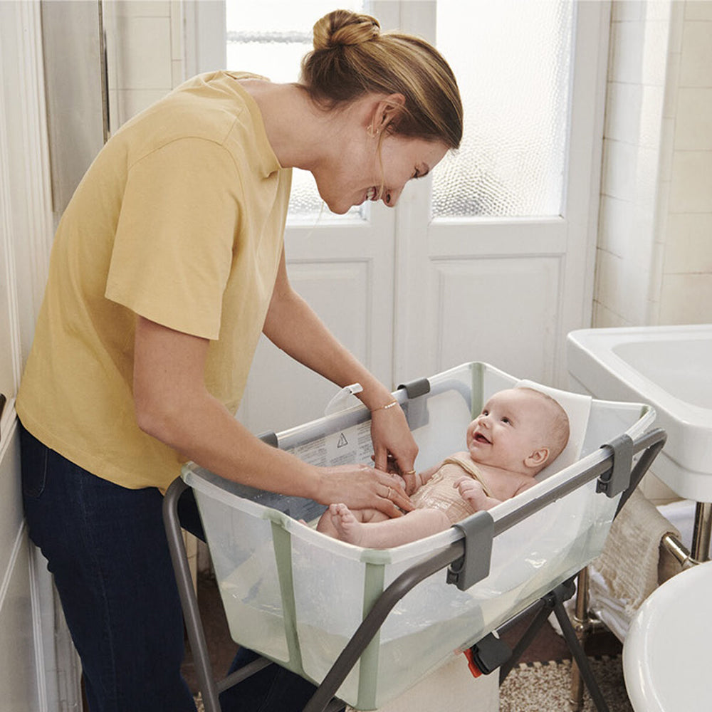 The Stokke Flexi Bath Stand is designed to bring you and your baby closer for bath time bonding and fun.