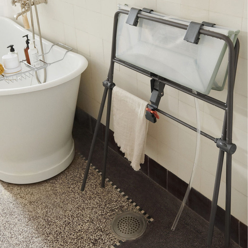 Made exclusively to fit the Stokke Flexi Bath, it’s designed for safety, ease of storage and convenience with everything close at hand. The tub lock also means the stand stays folded and erected unaided.