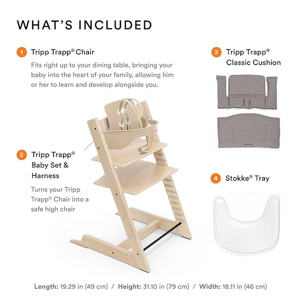 Note: The Stokke Tripp Trapp Harness and Extended Gliders are included in the Baby Set box.