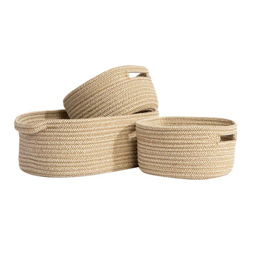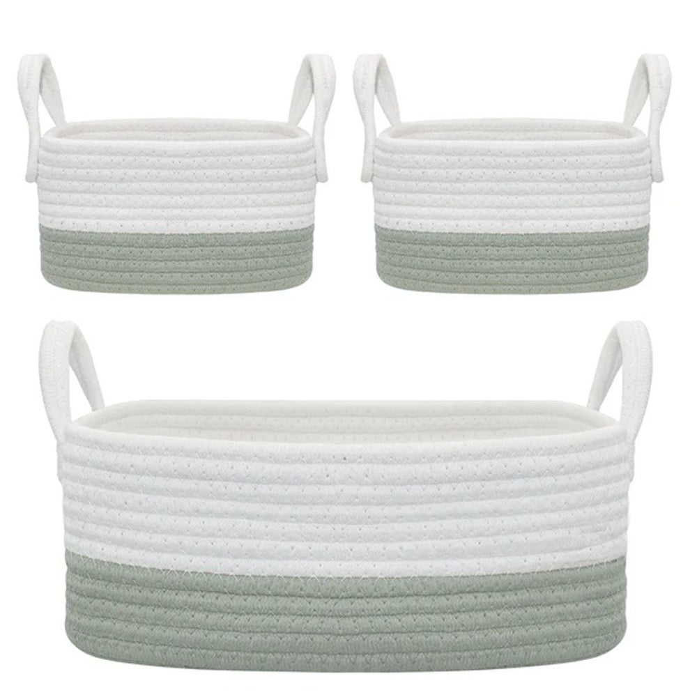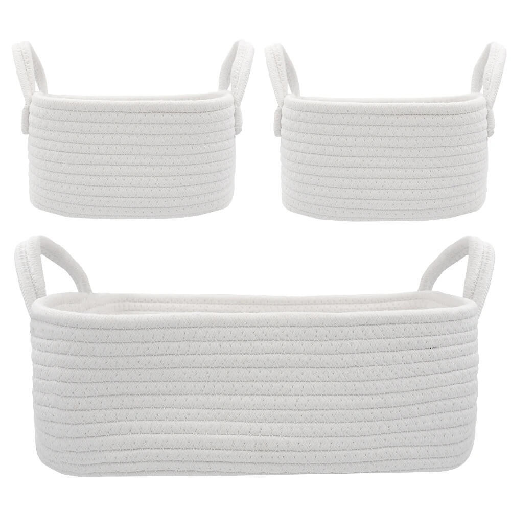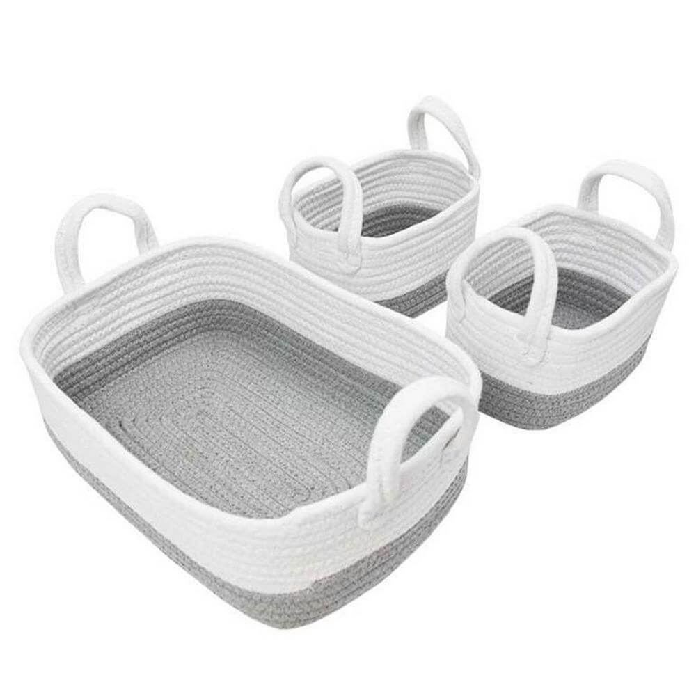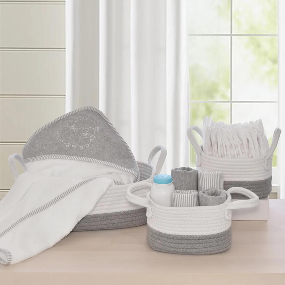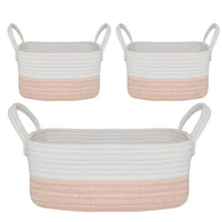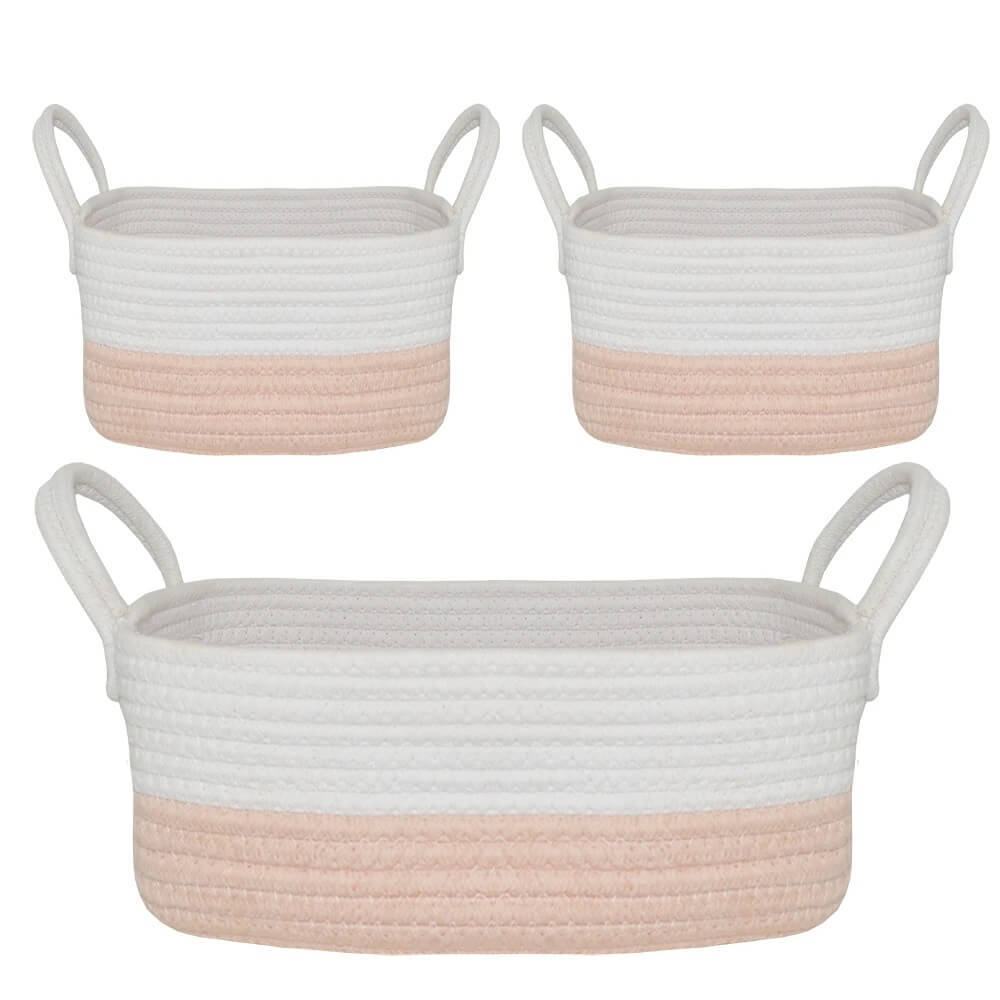 Perfect for under the change table or even in the bathroom, this 100% cotton rope 3 piece storage set from Living Textiles will keep everything organised for change and bath time.