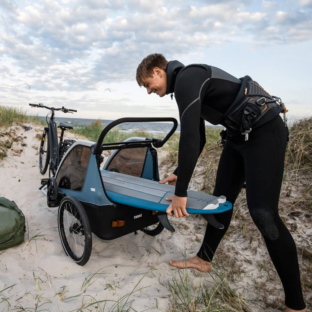 Load up your family and gear for any destination with Thule Courier β a safe and comfortable bike trailer for up to two kids.