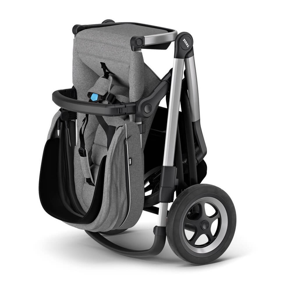 Whether in single, double, or twin mode, Thule Sleek is easy to manoeuvre anywhere, thanks to its compact size, front swivel wheels, and lightweight construction.
