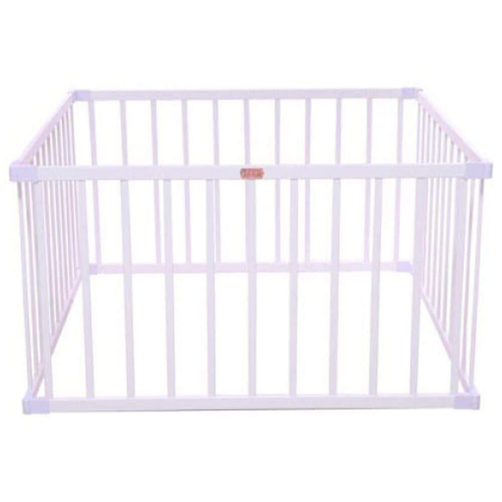 It achieves these remarkable characteristics through the patented design of its connecting corner which importantly makes it the only wooden playpen available with rubber feet to prevent sliging and push button assembly for quick foldup storage.