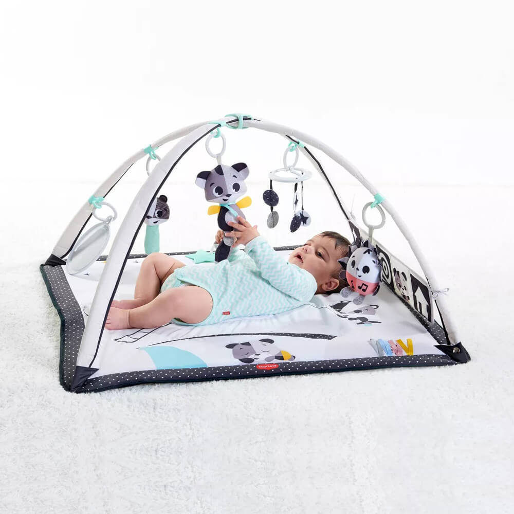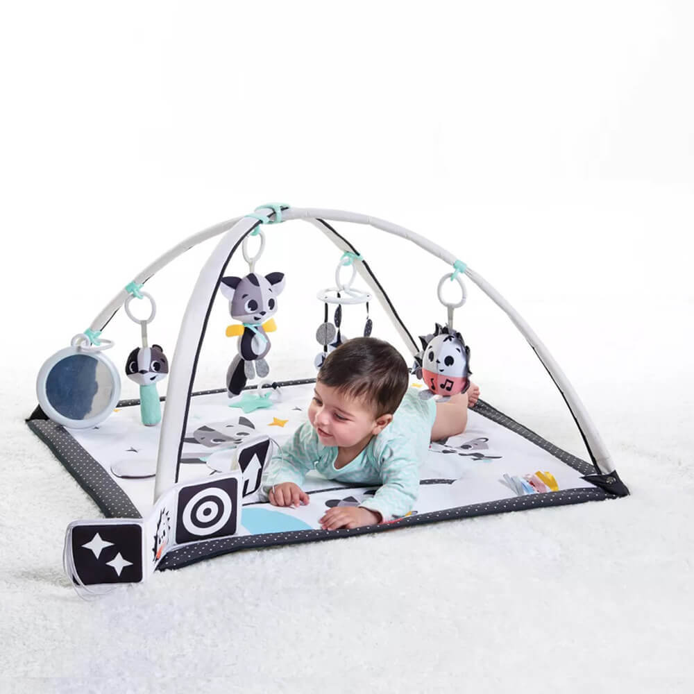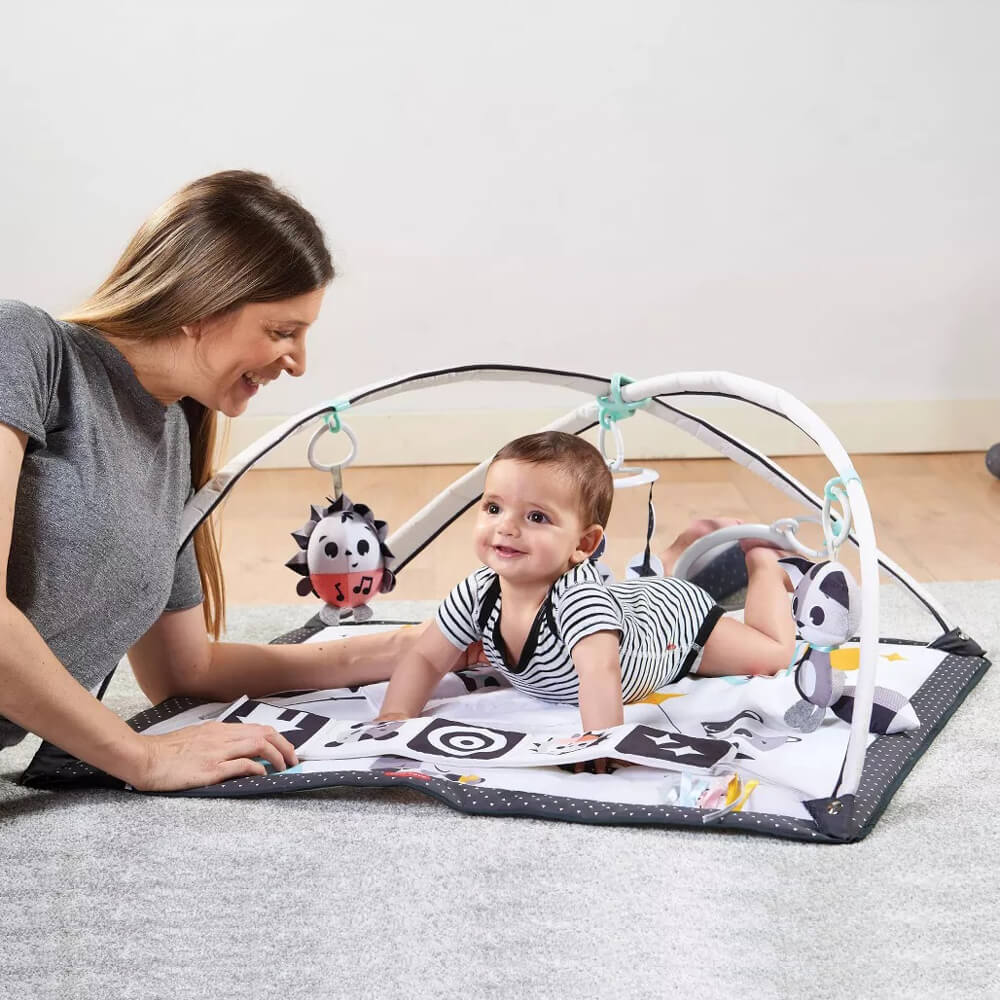 The Magical Tales Black & White Gymini is a stylish activity gym, designed especially to support newborn development. With 18 developmental activities and interactive toys, it encourages baby's skills as they naturally play. Its contrasting black and white details provide visual stimulation for newborns.