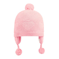 Delicately subtle heart shaped jacquard adorns the pretty baby beanie. Pom poms create a cute and whimsical look. The baby beanie Earmuff Heart is fully lined for enhanced comfort and greater warmth during the cooler months.