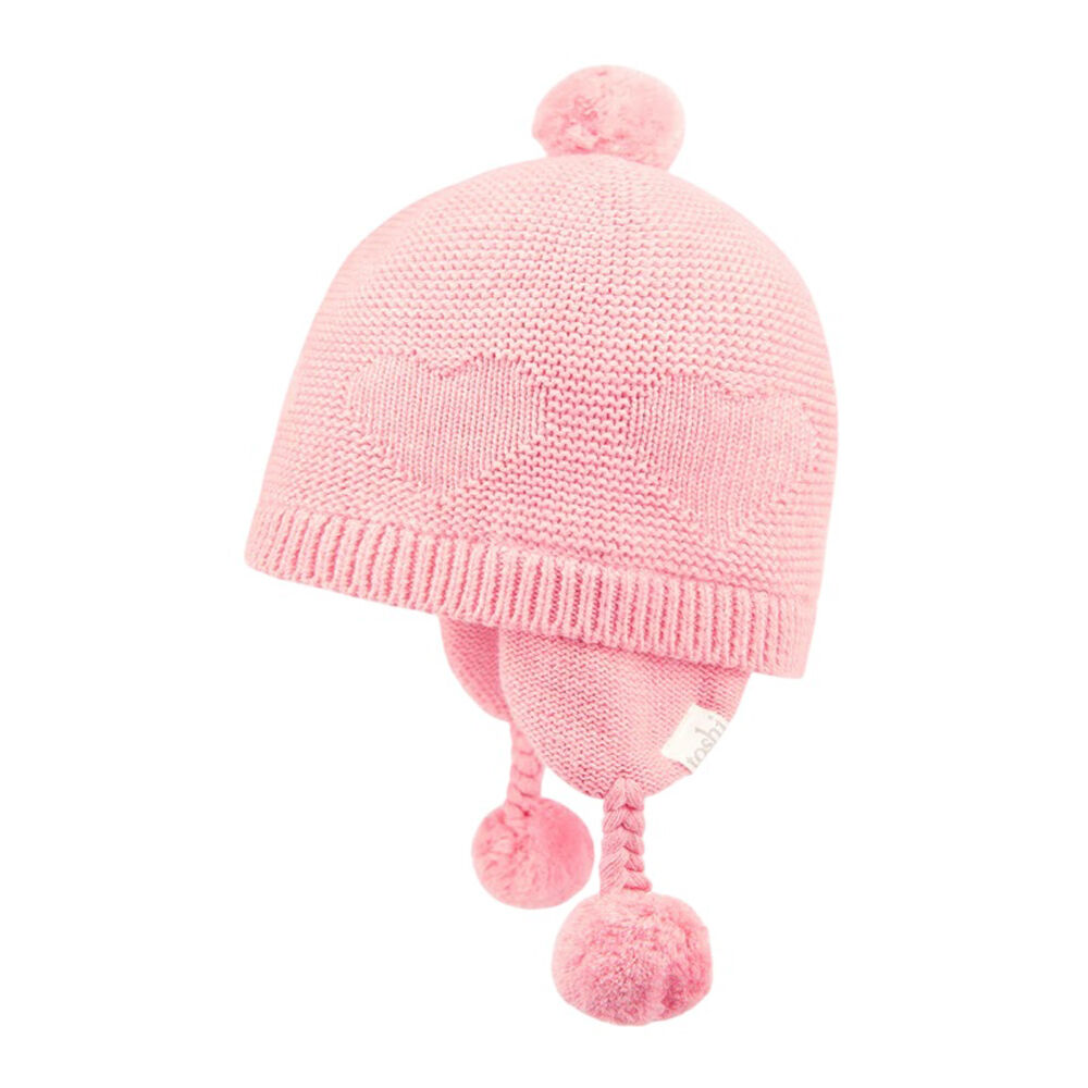 The beautifully textured melange yarn brings an element of refinement to this beanie. The Toshi baby beanie features ear flaps for cosy and nurturing protection from the elements.