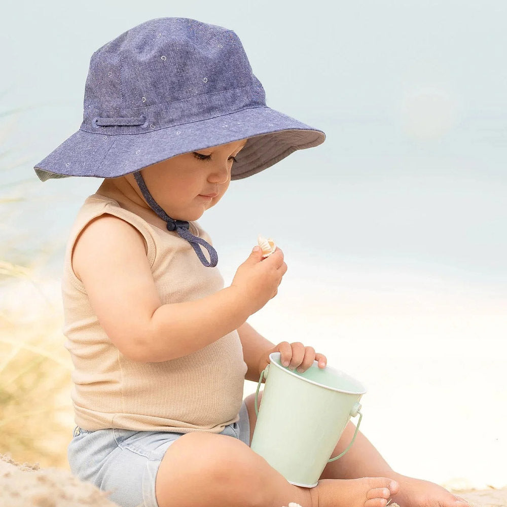 Sunhat Xavier is crafted from a highly durable cotton chambray fabric. The sunhat is fully lined for additional comfort. Enjoy summer in a classic Toshi sunhat!