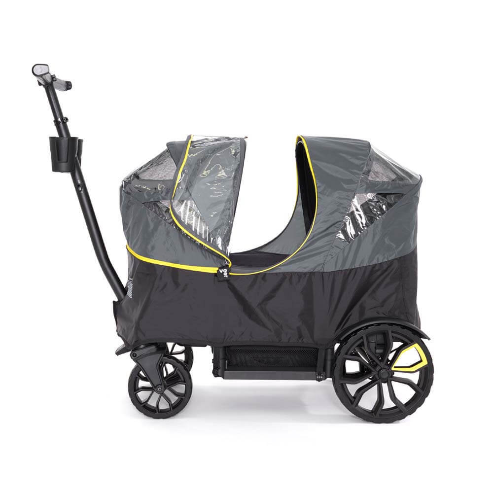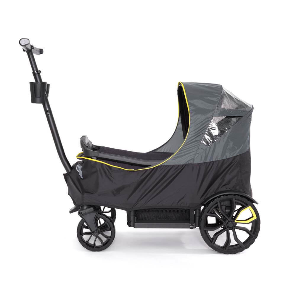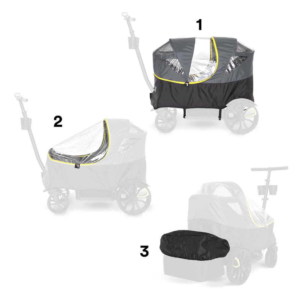 Donβt let the weather rain on your adventure. The All-Terrain Weather Cover will allow you to keep your passengers warm and dry in rain, snow and wind. Three in one design utilises your Retractable Canopy(ies) to give 1 or 2 passengers and/or Rear Basket coverage.