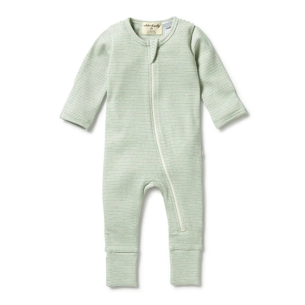 A must-have for newborns, this long sleeve footed zipsuit will keep your baby feeling safe and secure, while the fold over mittens (Newborn to 000) will protect baby's face from little fingernails. Crafted with GOTS certified organic cotton, this all-in-one zipsuit is soft and gentle on baby's sensitive skin.