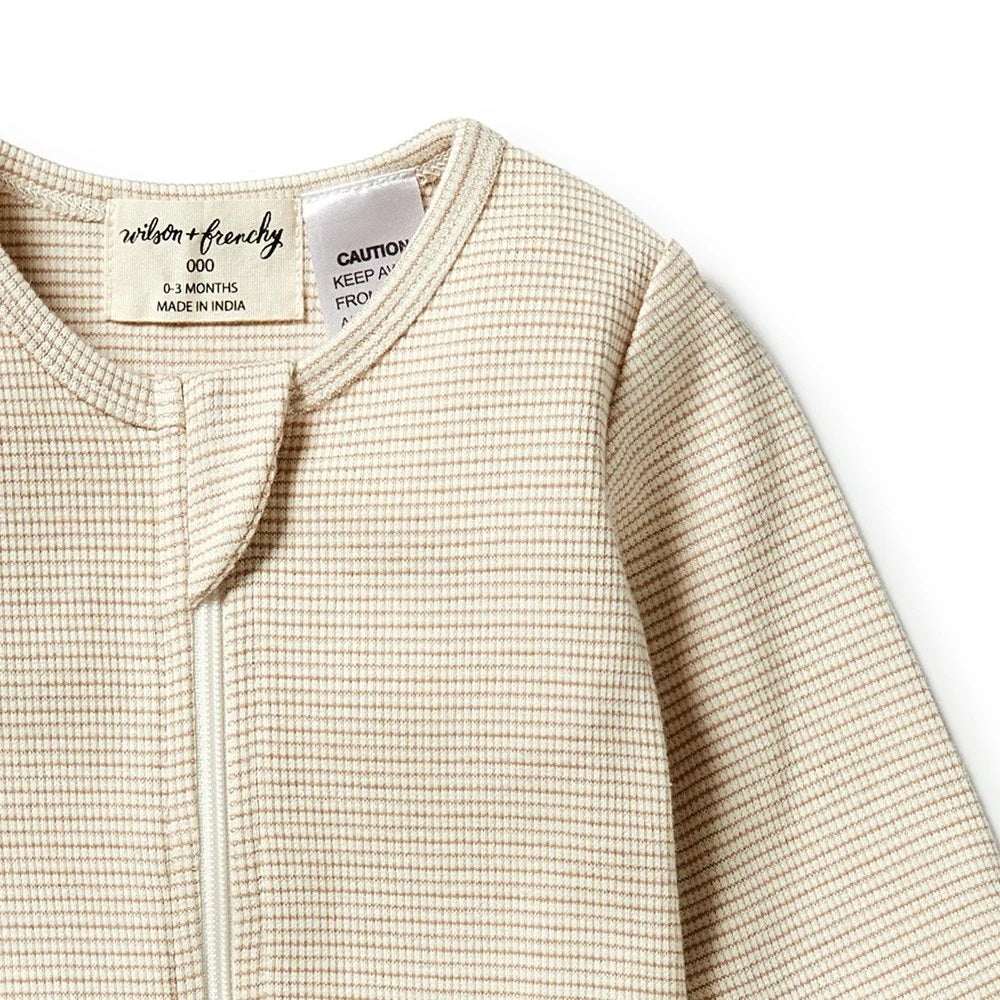 A must-have for newborns, this long sleeve footed zipsuit will keep your baby feeling safe and secure, while the fold over mittens (Newborn to 000) will protect baby's face from little fingernails. Crafted with GOTS certified organic cotton, this all-in-one zipsuit is soft and gentle on baby's sensitive skin.